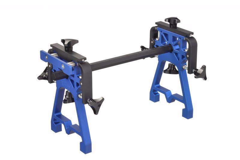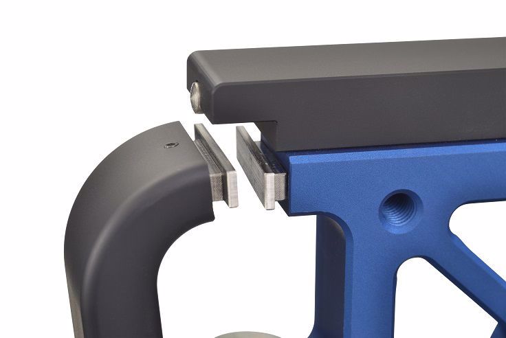 In deze professionele slijptafel worden je ijzers niet over de gehele lengte, maar in twee mee-kantelende klemmetjes geplaatst. Hiermee voorkom je een negatief effect op je bending.